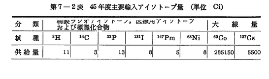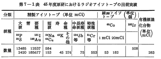 45年度のラジオアイソトープの供給状況は(第7-1表),(第7-2表)に示すとおりである。