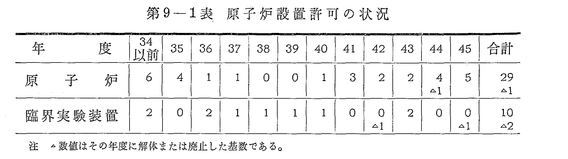 原子炉設置の年度別の許可状況は(第9-1表)に示すとおりである。