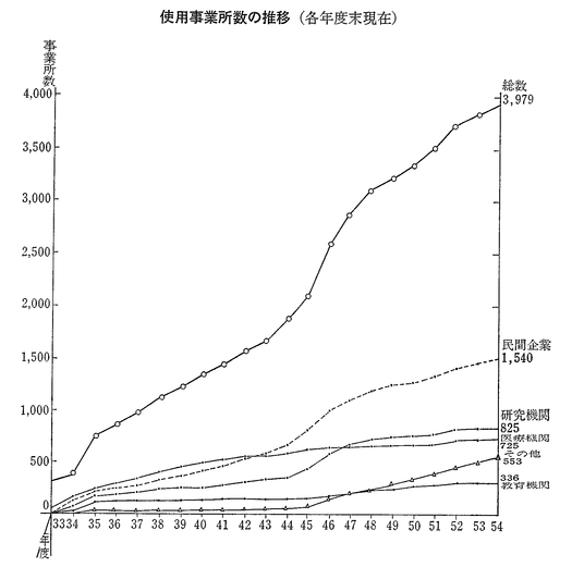 また,試験研究面では,利用分野が広範であり,照射研究(品種改良,食品照射,放射線重合の利用),トレーサー利用研究(生理生態研究,施肥農薬施用法の改良,地下水流動機構の解明),放射化分析利用研究(極微量元素の検出・定量等)が国立試験研究機関を中心として進められている。昭和54年度における研究開発の状況は以下のとおりである。