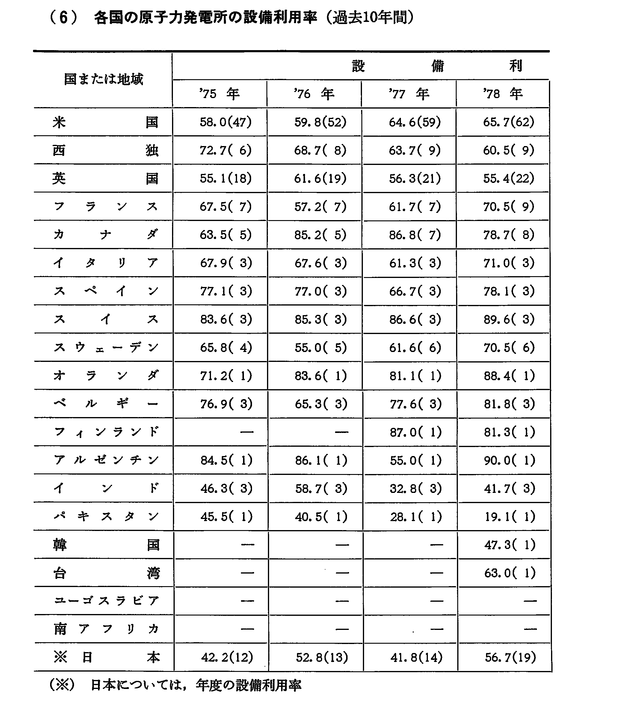 (6)各国の原子力発電所の設備利用率(過去10年間)