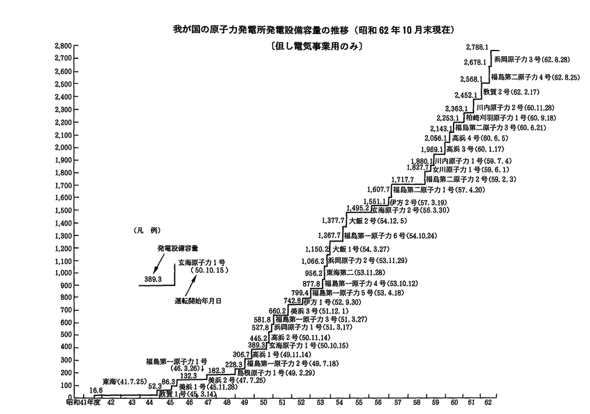 これら運転中,建設中及び建設準備中のものは昭和62年10月末現在,合計51基,電気出力4,319万6千キロワットである。