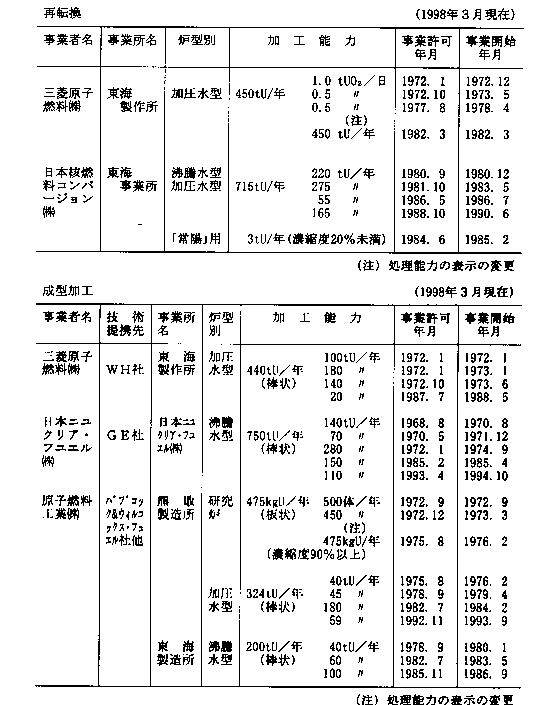 核燃料再転換・成型加工事業の分野は、ほぼ国産化が達成され、高品質な製品を製造している。現在、我が国で核燃料再転換・成型加工を行っている会社は、三菱原子燃料(株)、日本ニユクリア・フユエル(株)、原子燃料工業(株)及び日本核燃料コンバージョン(株)の4社ある。②ウラン濃縮・再処理等の核燃料サイクル事業
