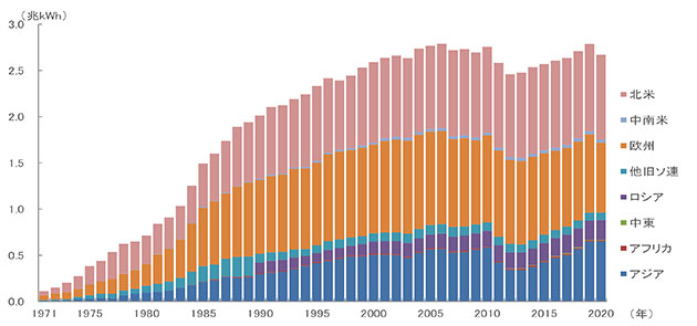 図 3-5 世界の原子力発電電力量の推移(地域別)