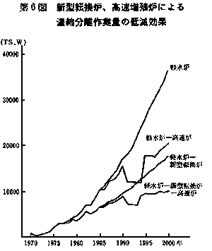 第6図 新型転換炉、高速増殖炉による濃縮分離作業量の低減効果