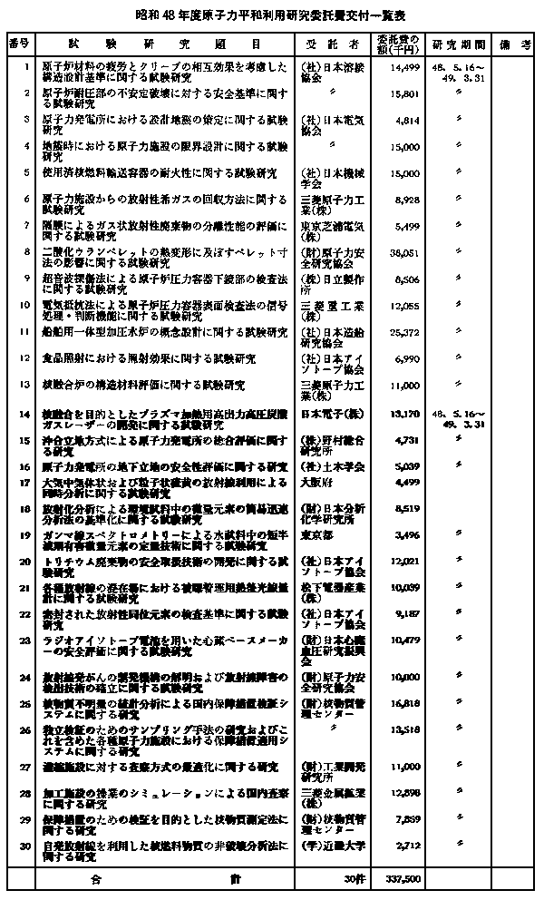 | 昭和48年産原子力平和利用研究委託費交付一覧表 |