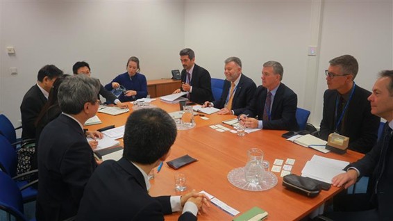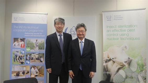 Chairperson Mitsuru Uesaka attended the 69th IAEA General Conference held at the IAEA Headquarters in Vienna, Austria, from September 15 to 17, 2025. With Mr. Minoru Kiuchi, Minister of State for Science and Technology Policy, representing the Government of Japan, he held bilateral meetings with IAEA Director General Grossi and other dignitaries from various countries. He also held bilateral meetings with senior officials from the IAEA, Canada, the EU, and others on a country-by-country basis. He also hosted the side event “Current Status of Clinical Research on Nuclear Medicine Therapy Using Ac-225 and the Supply Chain for Ra-226, the Raw Material.”